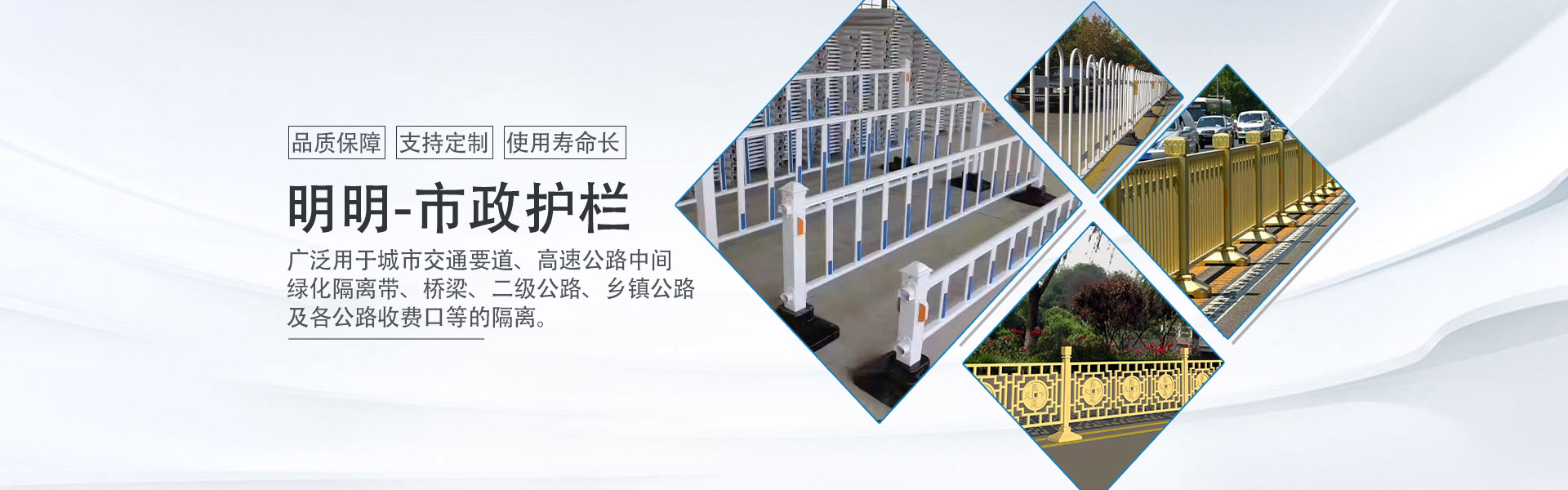 道路中間交(jiāo)通(tōng)護欄,俗稱“路口護欄”或“橫坡護(hù)欄”,它是一種雙層或多層路麵結(jié)構,具有護欄高度多、單層路麵上無障礙等特(tè)點,是通過路基牆體縱向拉接的一種新型的交通安全形式。